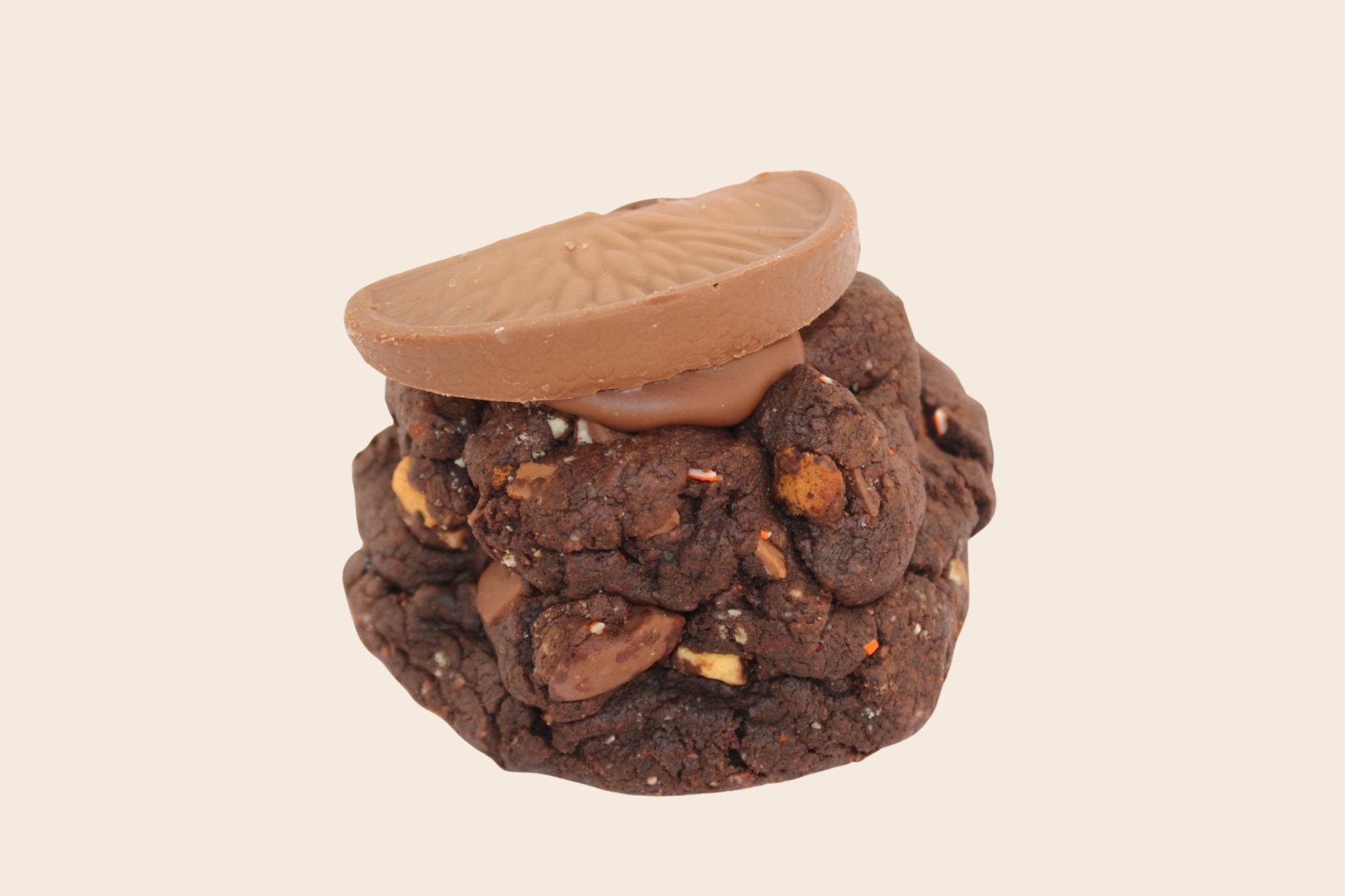 A decadent chocolate dough layered with milk chocolate, airy chocolate orange, bursts of Jaffa and soft Jaffa cake throughout.
