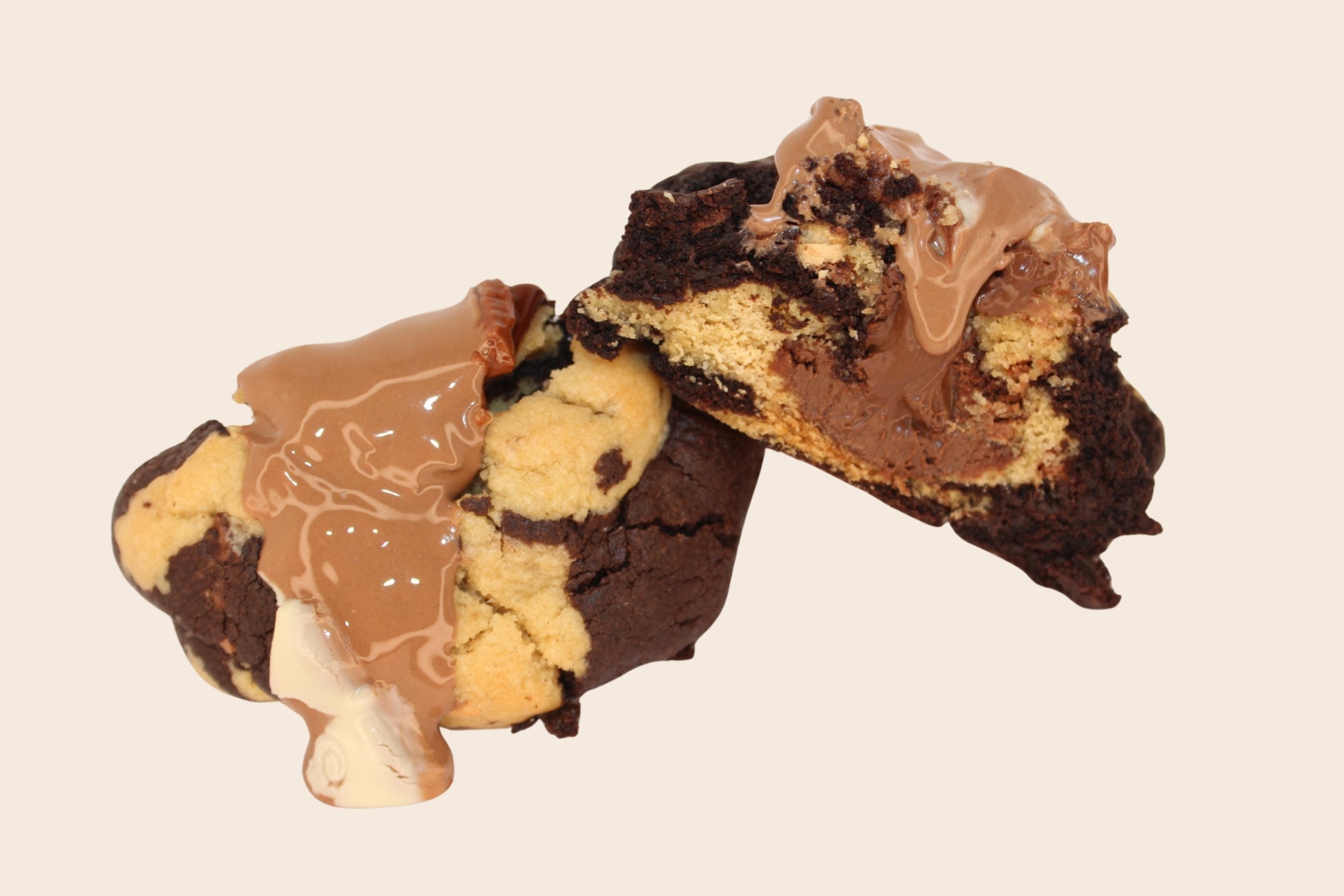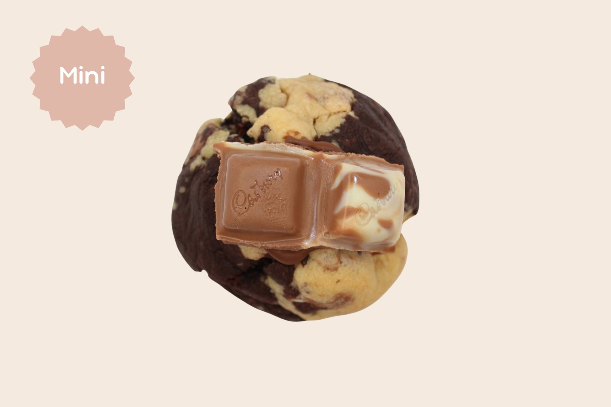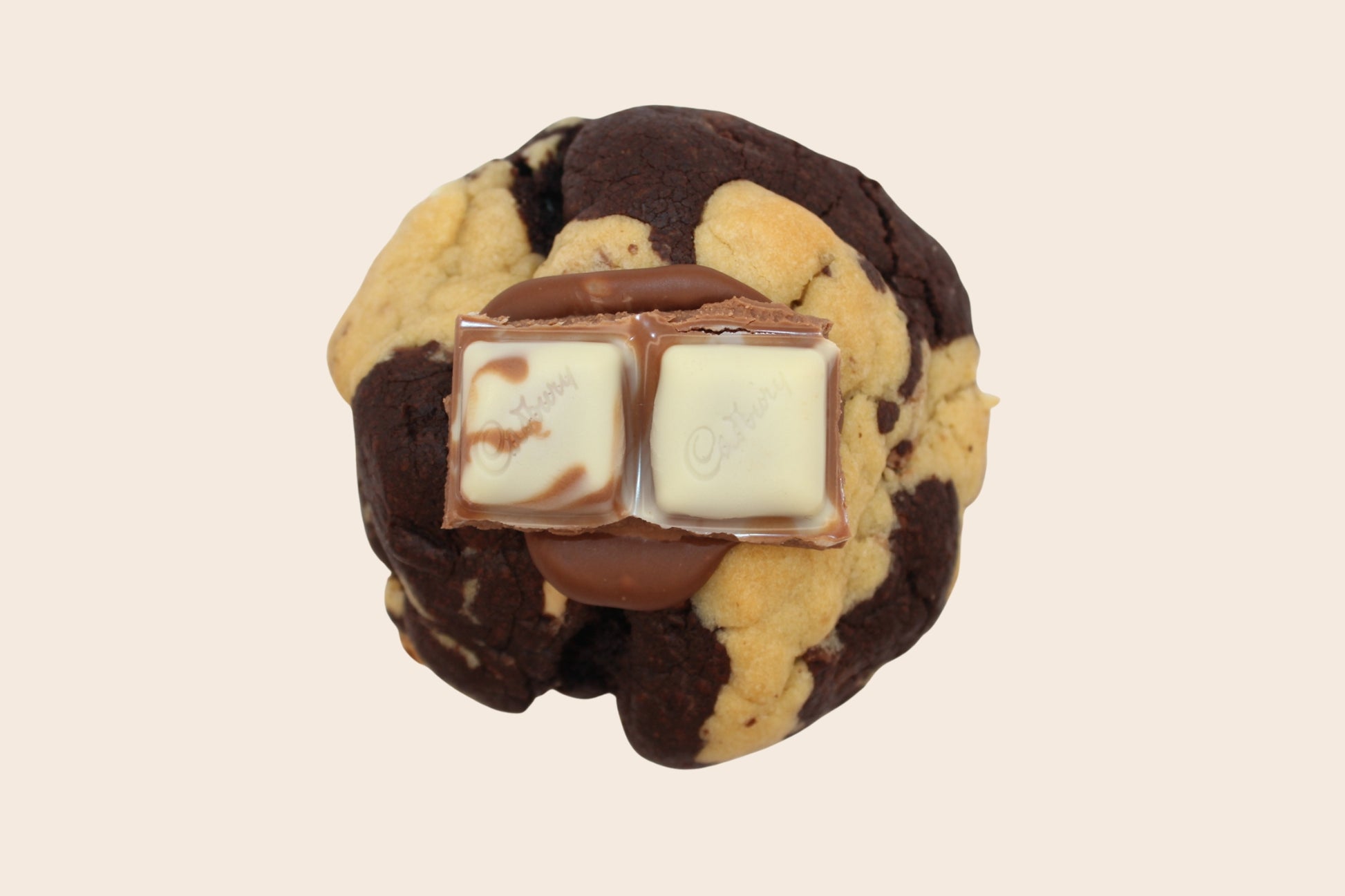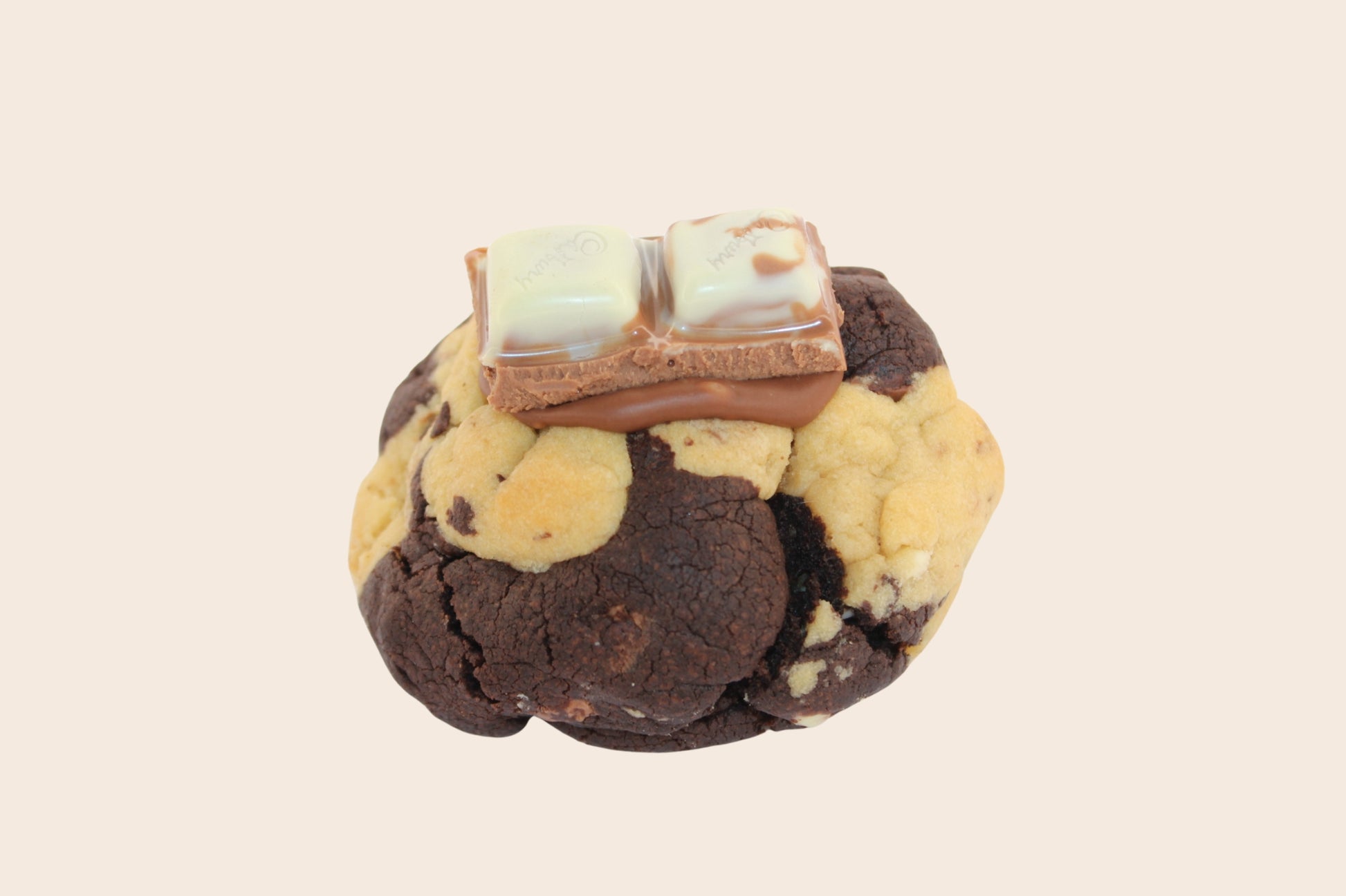 Swirled vanilla and chocolate dough packed with milk chocolate and Marble Caramilk, finished with a gooey hazelnut centre.